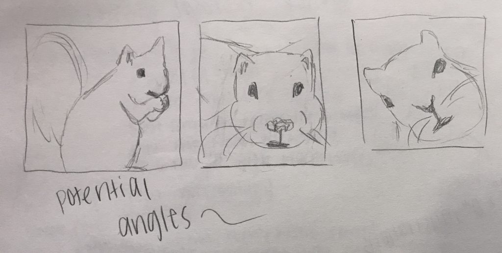 For my senior exhibit I would like to illustrate animals from north-eastern Wisconsin. Currently I’m specifically drawn to squirrels because they seem to do funny things around our campus. I think it would be really neat to capture them in these funny acts. To do this, over this summer I plan to take reference photos. I live in the area so this will be easy. I would love to get some neat close-up shots and turn them into funny illustrations. I hope to do one with a very large piece of food in its mouth, like a piece of bread or pizza. I might even make an illustration of the iconic albino squirrel. The illustrations would be mainly digital, but I plan on turning a few into screen prints or linocuts. The style of these would be more realistic than cartoons because I especially like how my above illustration of the butterfly turned out. As for installation in the gallery, I would like to frame ten 8″ x 8″ illustrations and potentially an 8″ x 10″ linocut and 11″ x 17″ screen print. Depending on what images I collect and how I decide to illustrate these images, these sizes and quantities may vary, but I hope to stay reasonably close to these estimates.